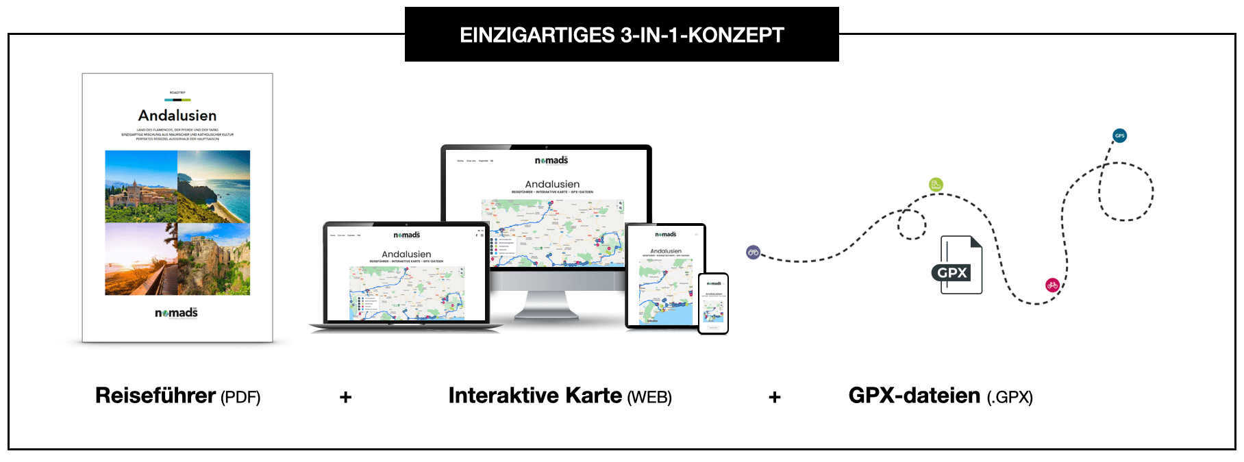 - Inklusive GPX-Dateien, laden Sie die komplette Route sowie alle Rad- und Wandertouren direkt auf Ihr GPS-Gerät.